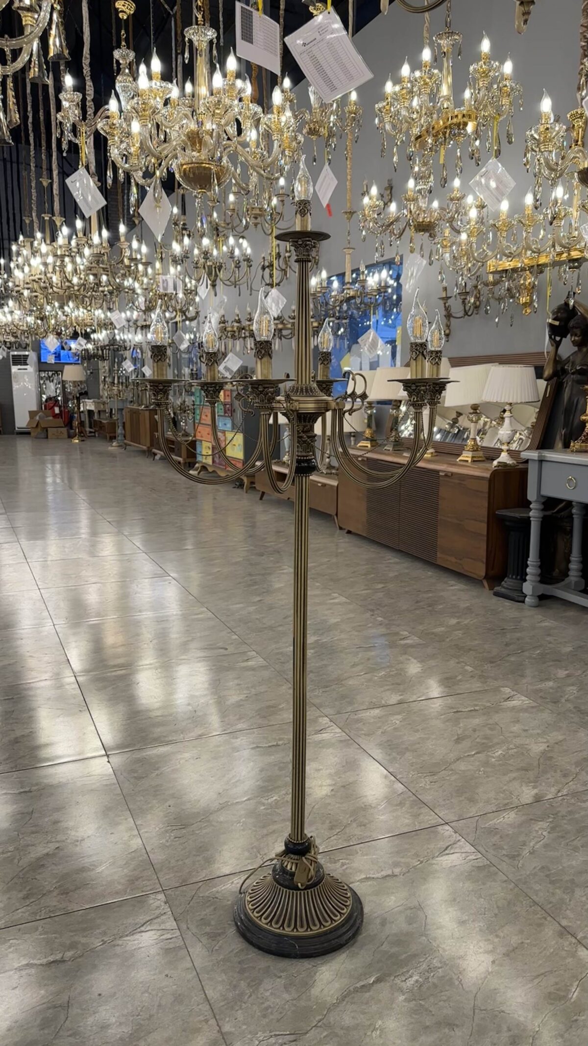آباژور ایستاده نئوکلاسیک برنجی آنتیک 7 شاخه مدل سر ستون کبریتی کد ST175
