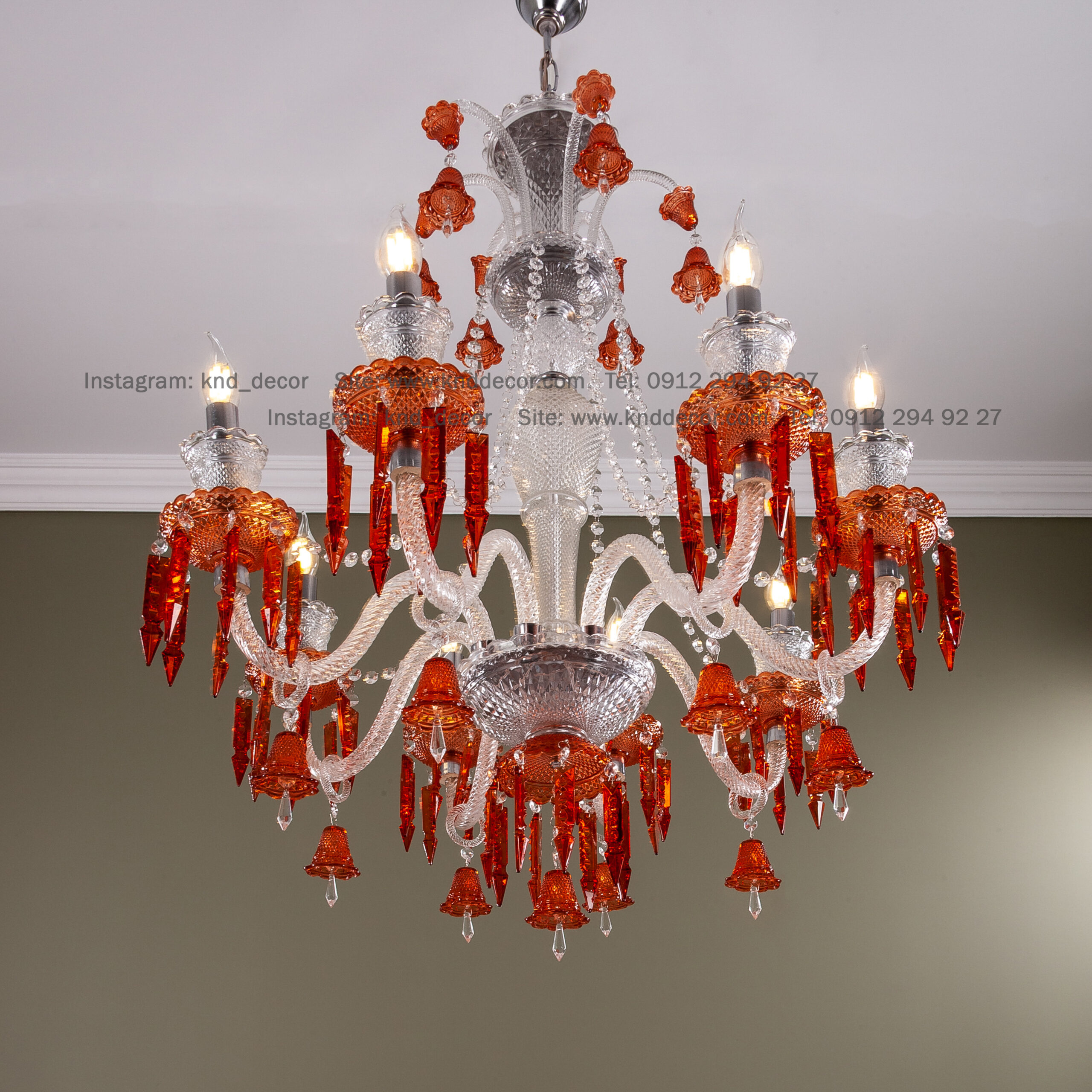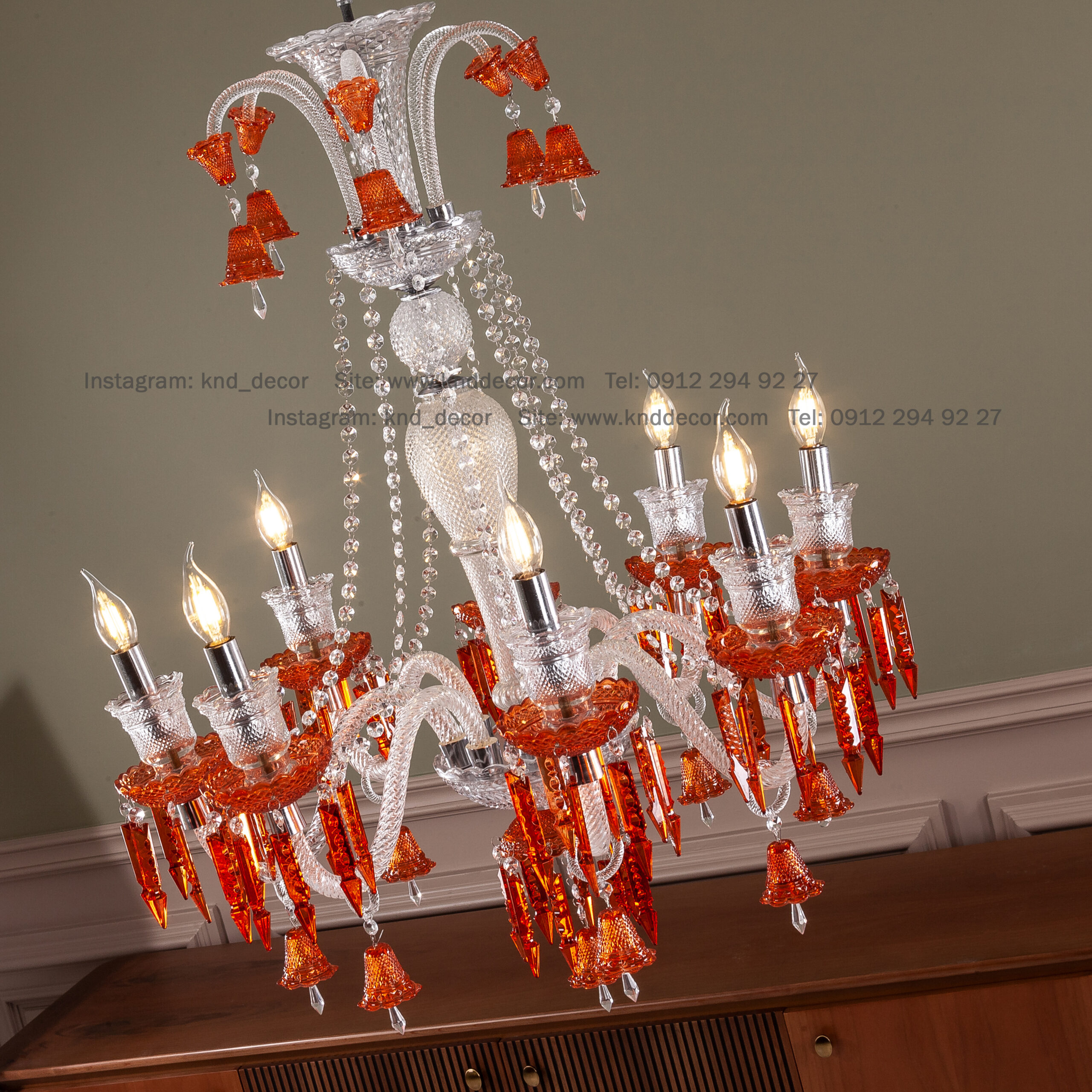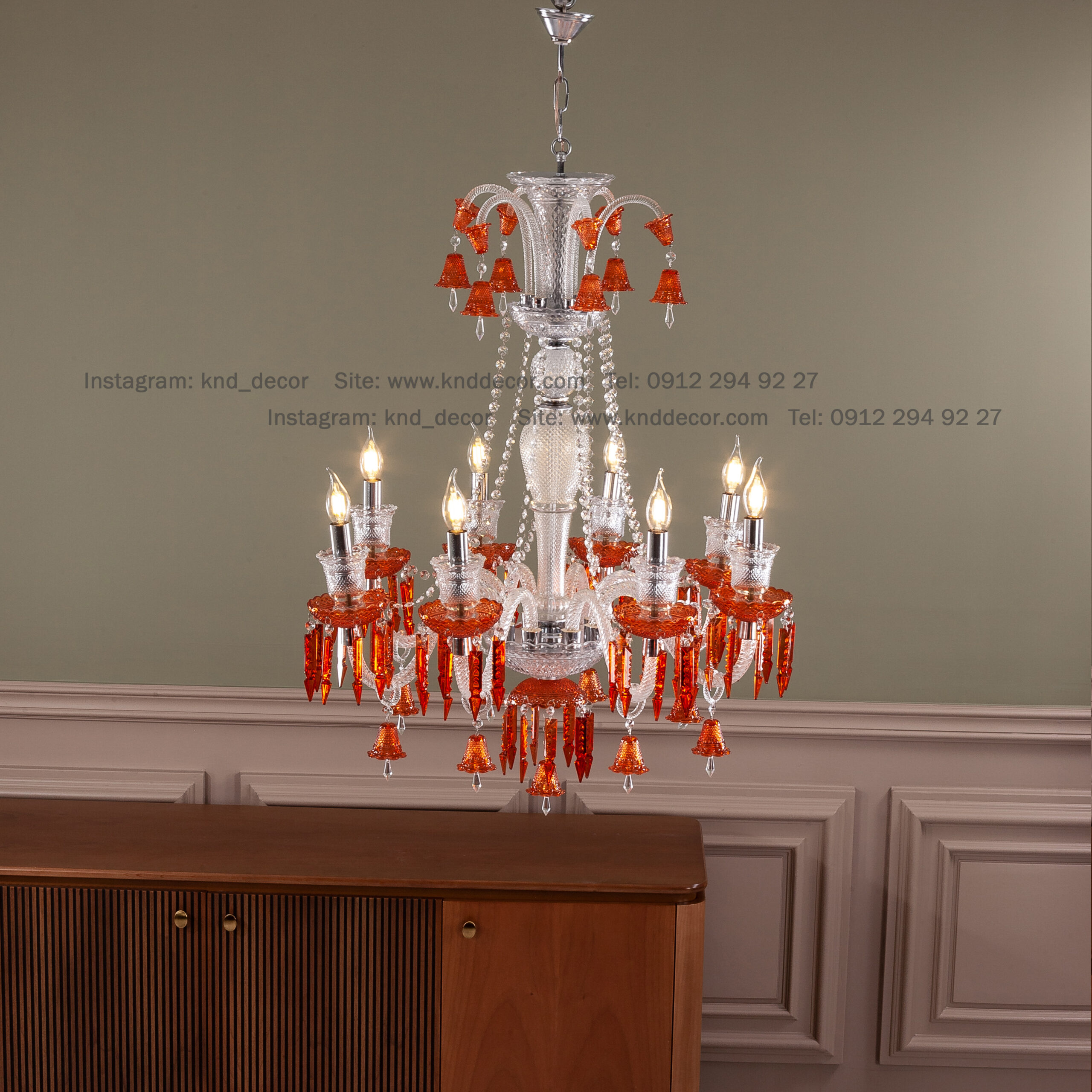 باکارات گرید ۳ رنگی سفید نارنجی ۸ شاخه