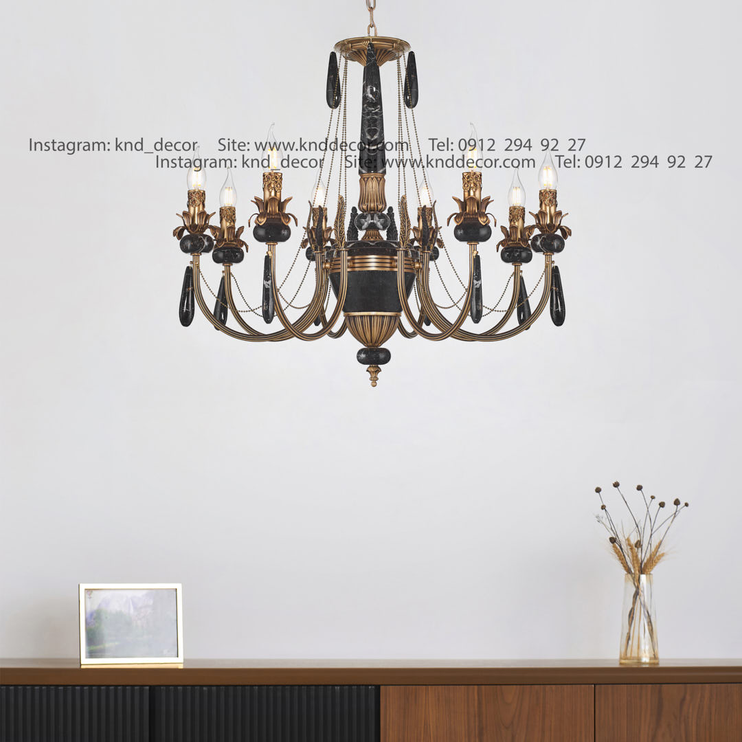 لوستر لیانا برنجی آنتیک زنبق آفتاب سنگ مشکی آویز سنگ 8