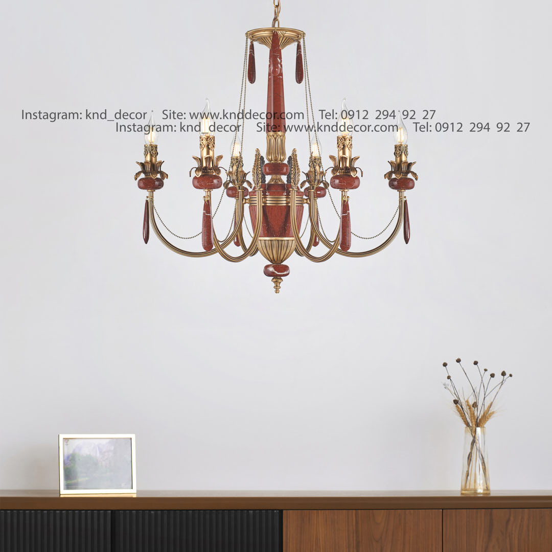 لوستر لیانا برنجی آنتیک زنبق آفتاب سنگ قرمز آویز سنگ 6