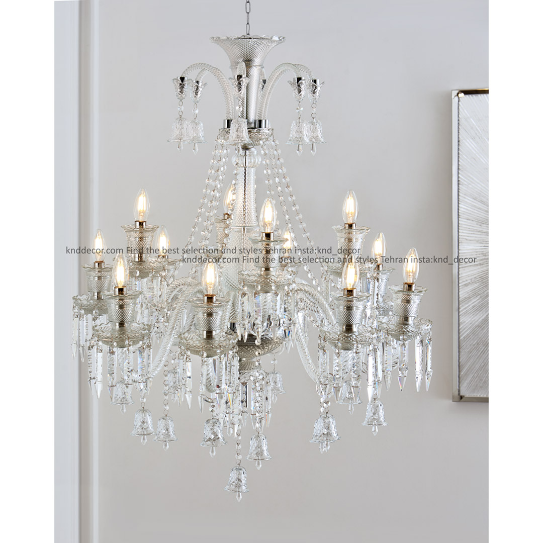 لوستر باکارات گرید 2 ساده شاخه 30 سانت کاسه 21 شفاف 12