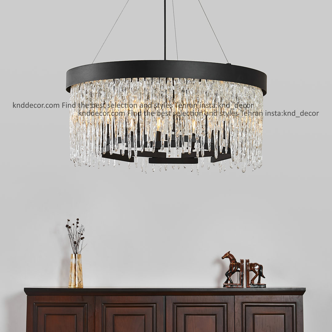 لوستر 3090 مشکی 70 سانت با کریستال قندیلی