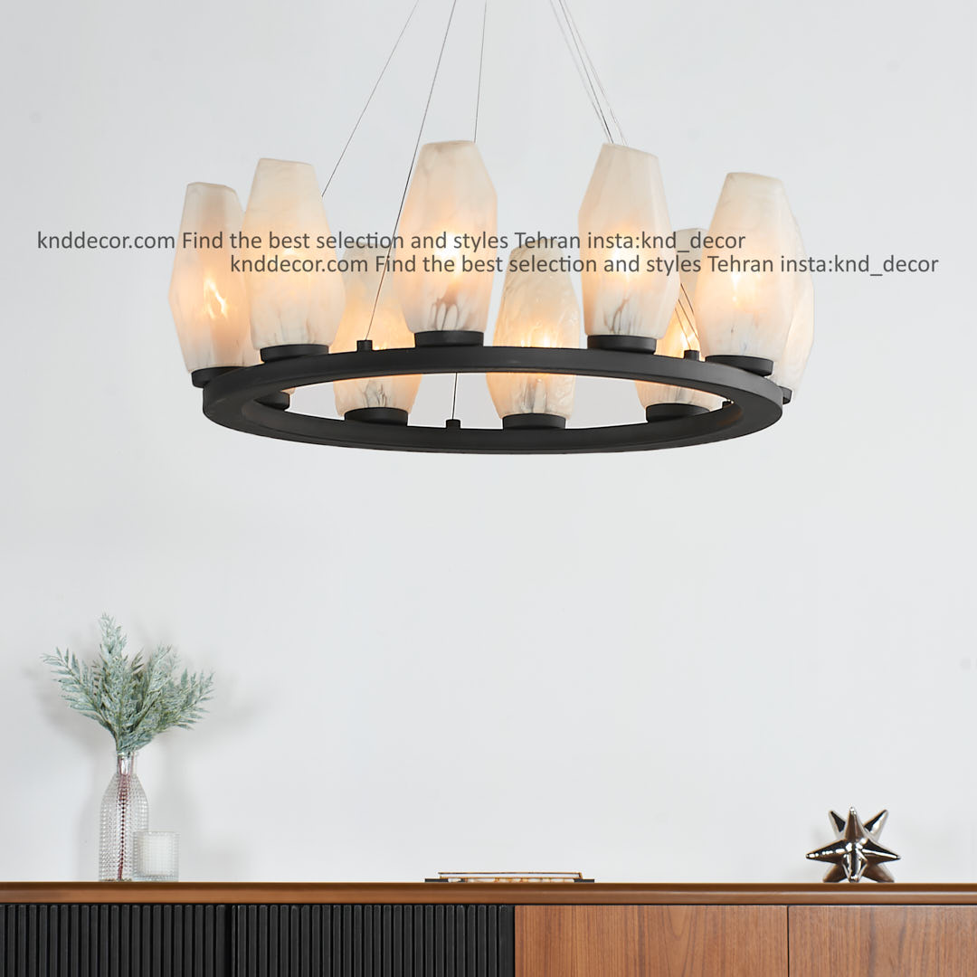 لوستر 1041 قطر 85 سانت 10 مشكی با حباب 120 طرح سنگ