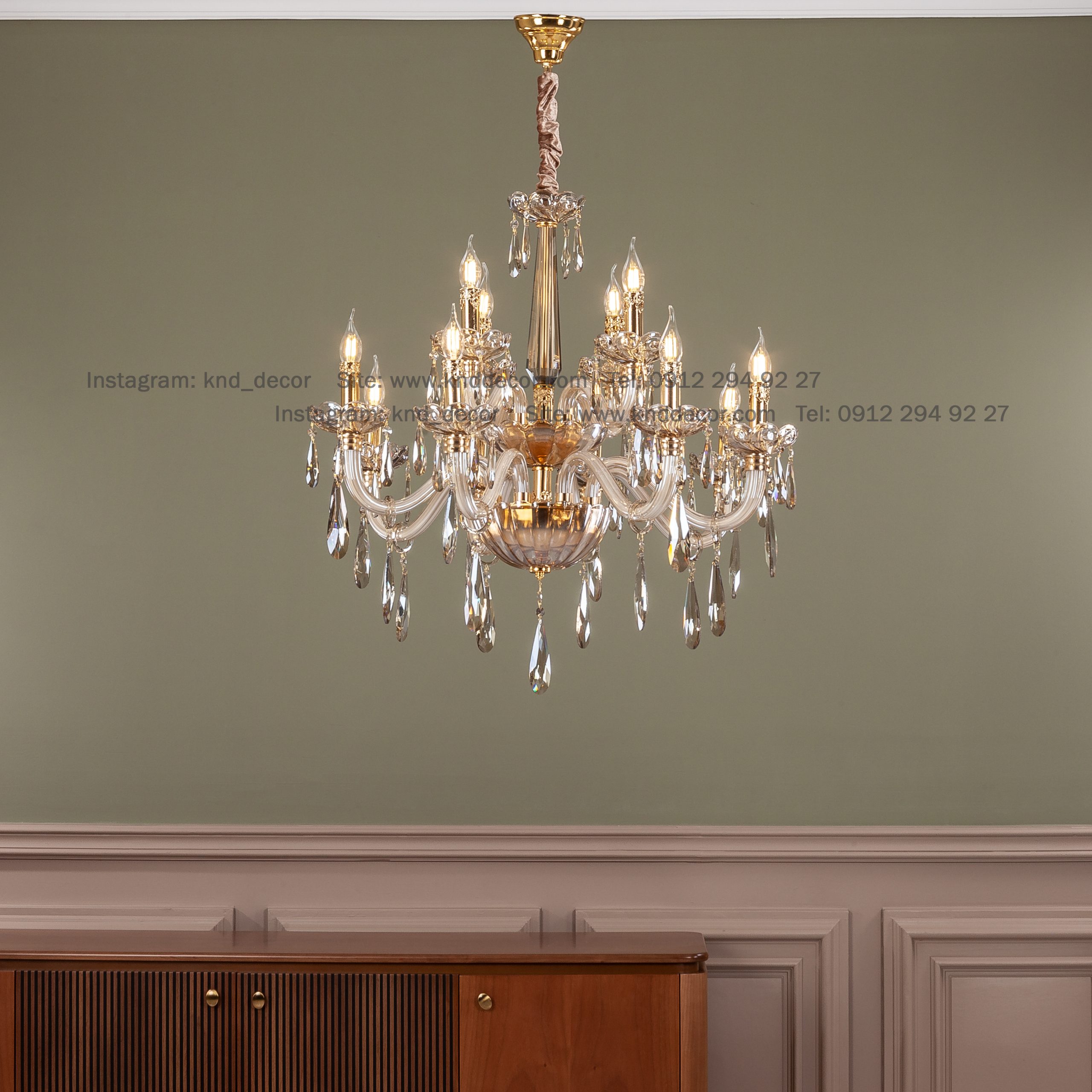 لوستر اس بلوری زنبق پیچ آویز بادامی ۱۲