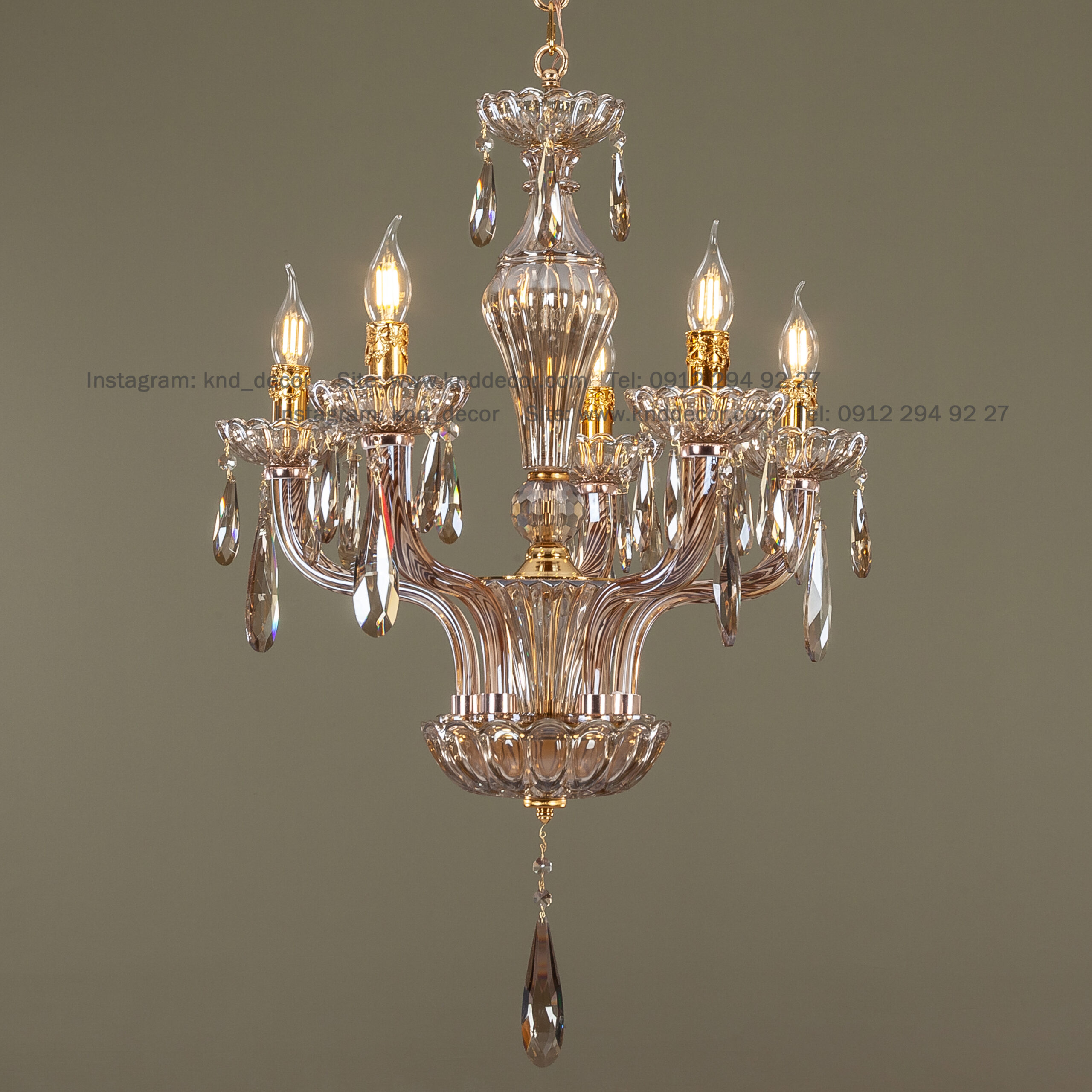 لوستر اس بلوری شیاردار زنبق شصتی آویز بادامی 5