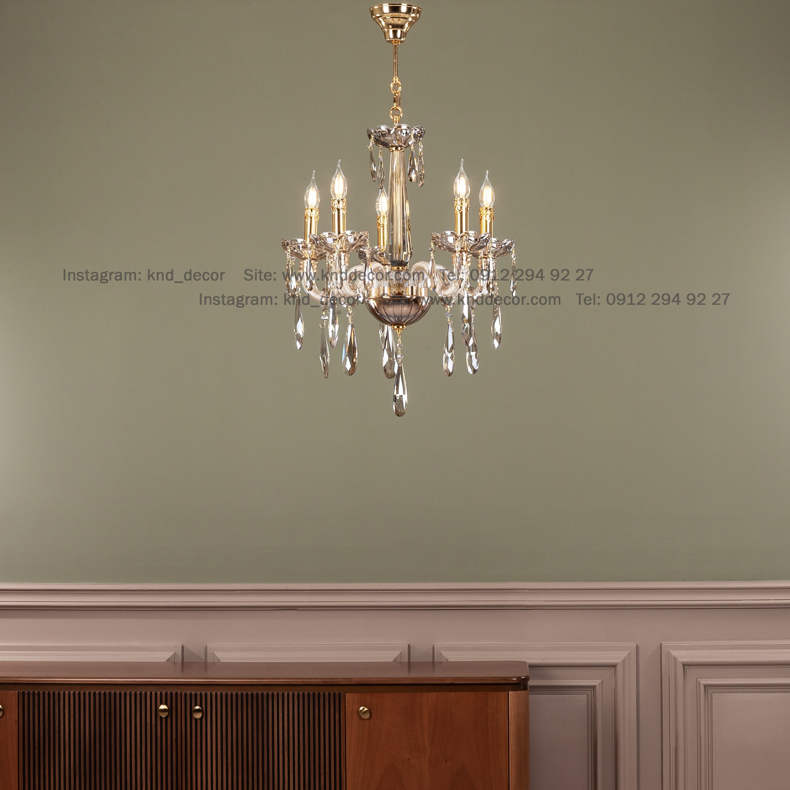لوستر اس بلوری زنبق پیچ آویز بادامی 5