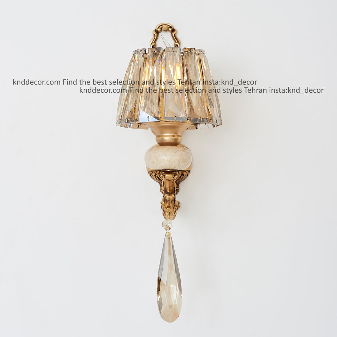 دیواری جار پتینه سنگ کرم با کلاهک کریستال آویز بادامی 1