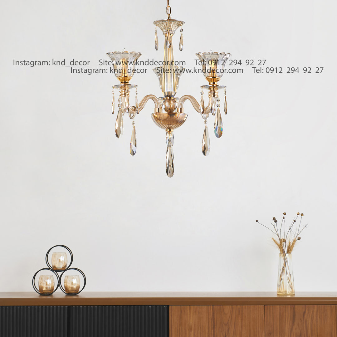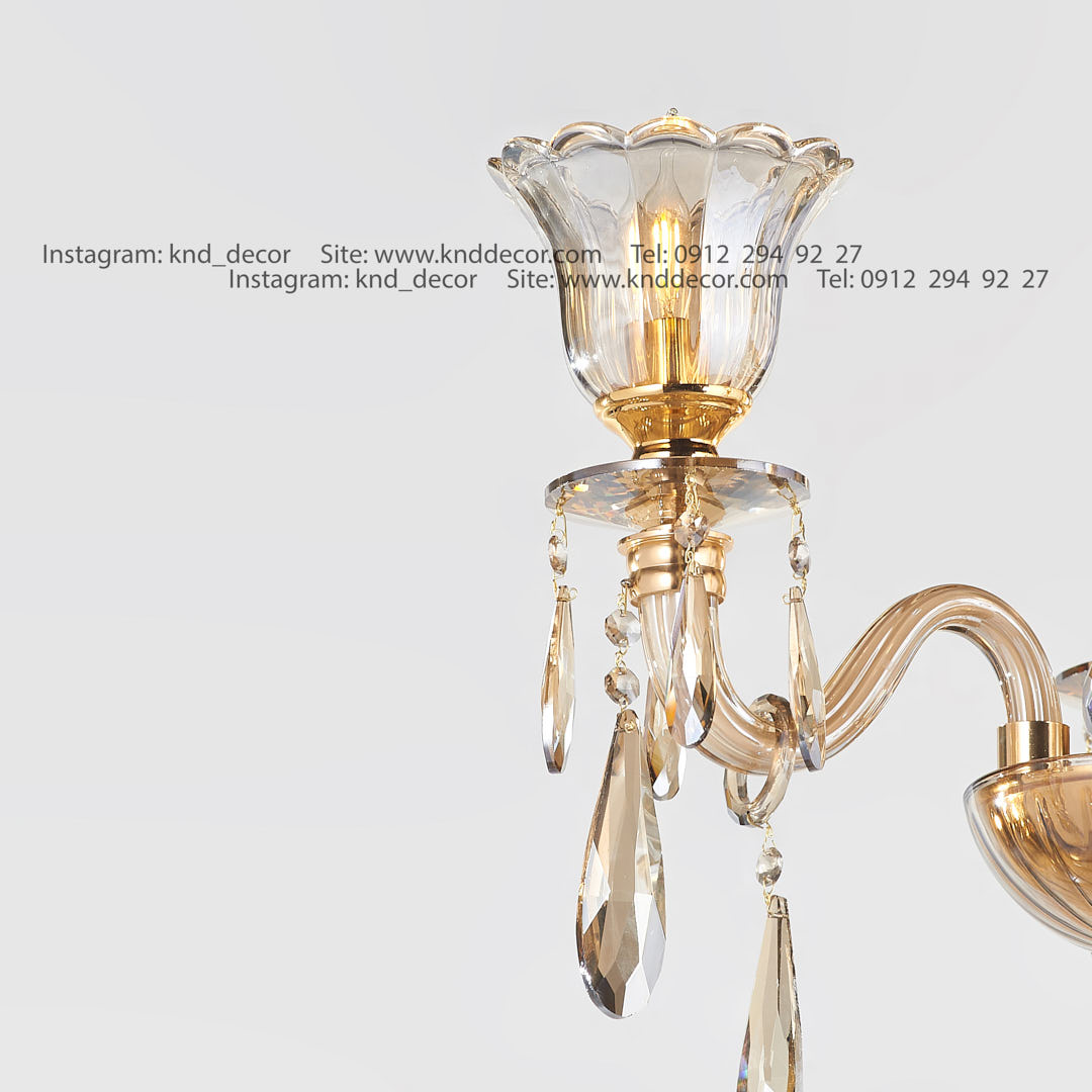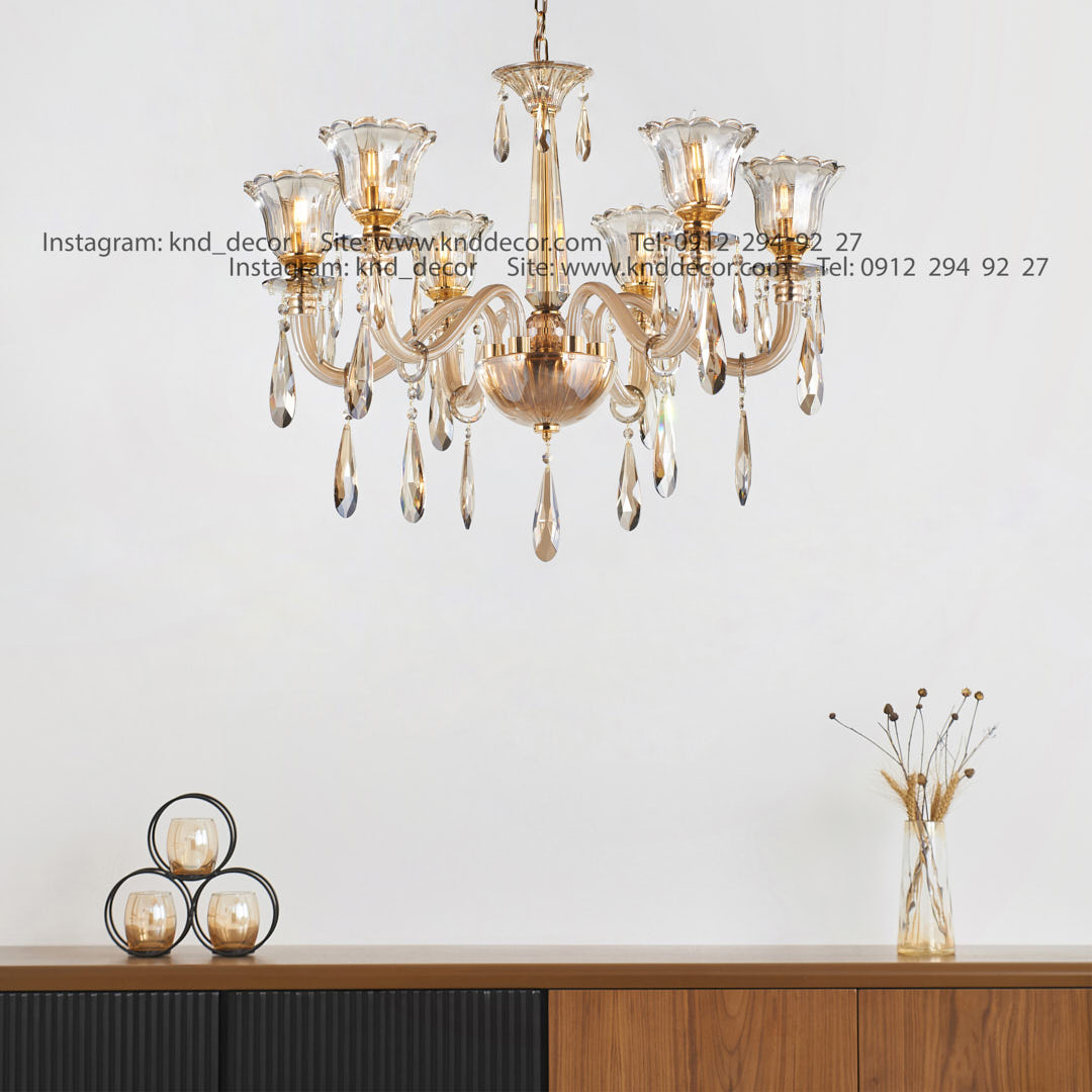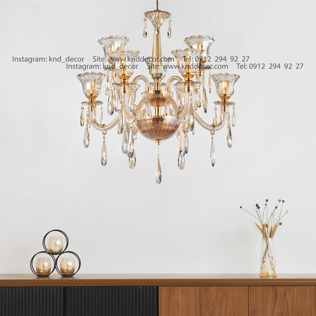 لوستر اس بلوری زنبق تخت با لاله آویز بادامی