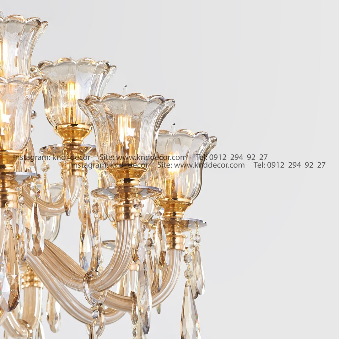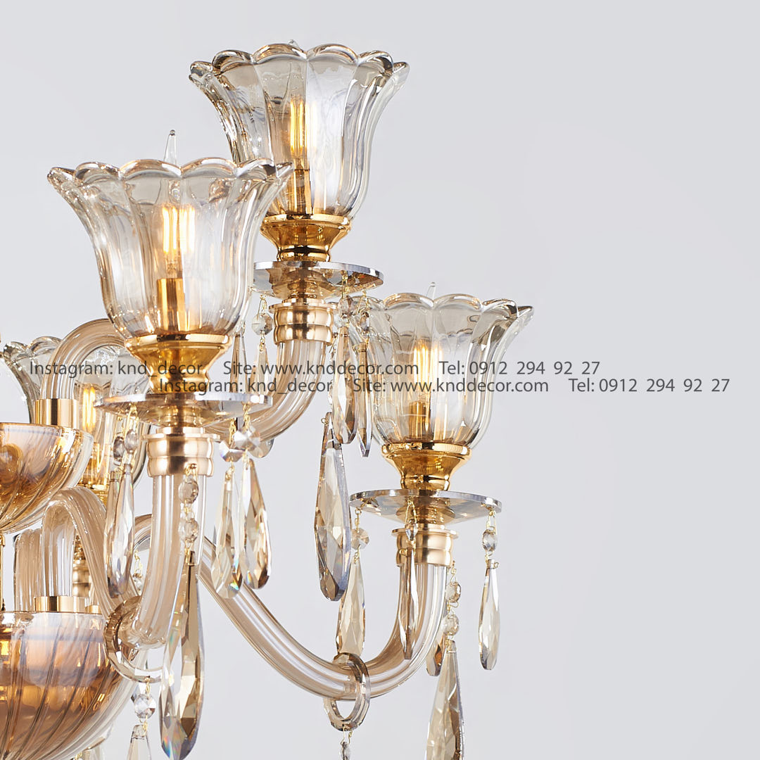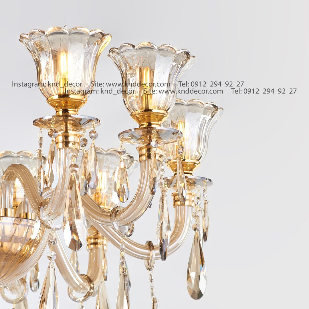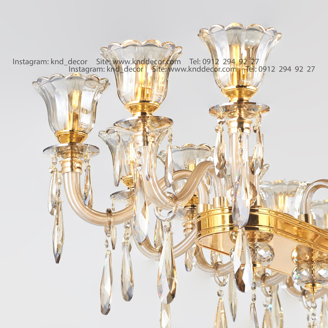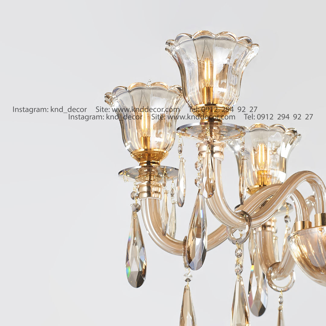 لوستر اس بلوری زنبق تخت با لاله آویز بادامی