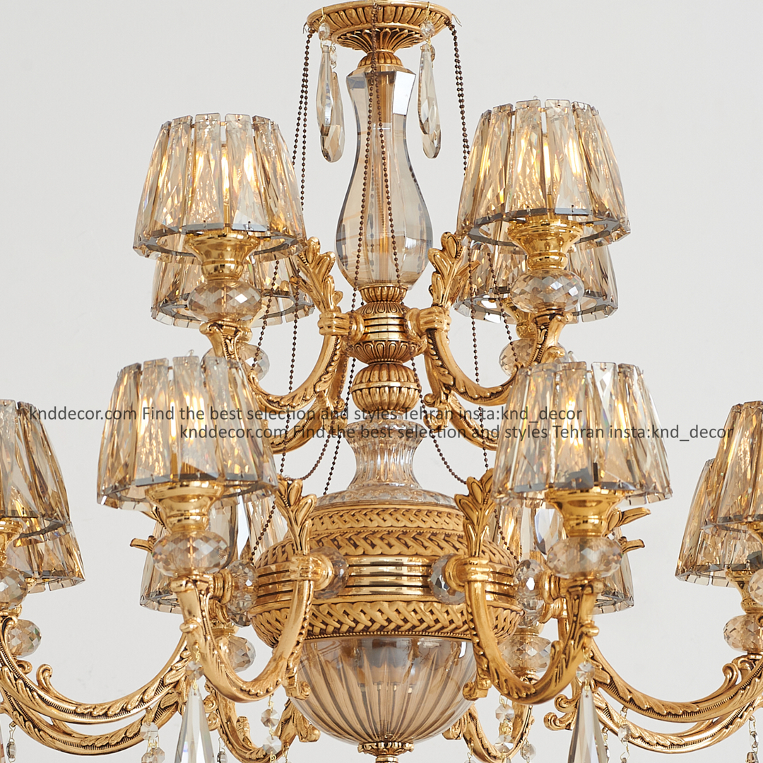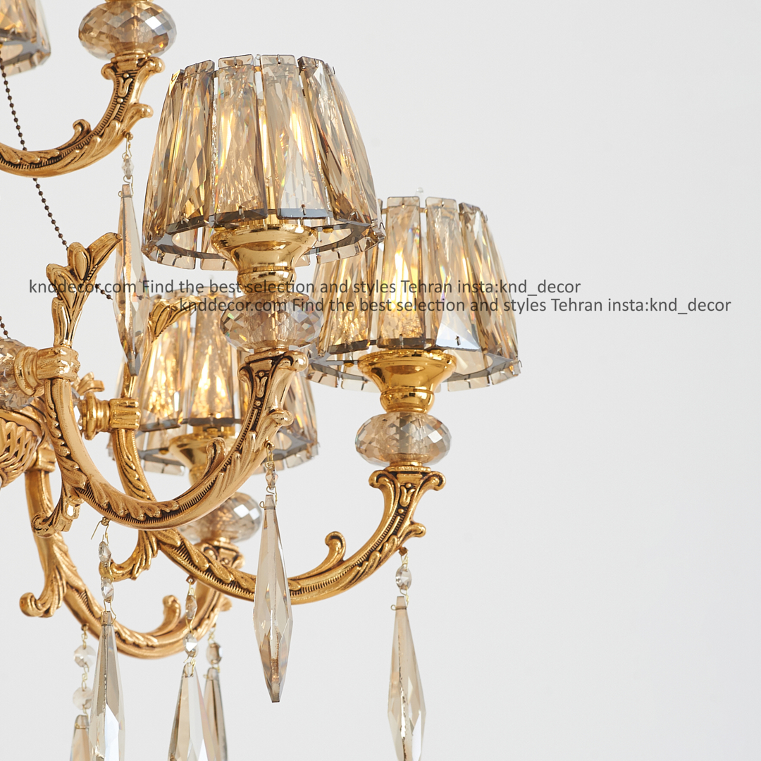 لوستر جار پتینه کریستال با کلاهک کریستال آویز بادامی 12