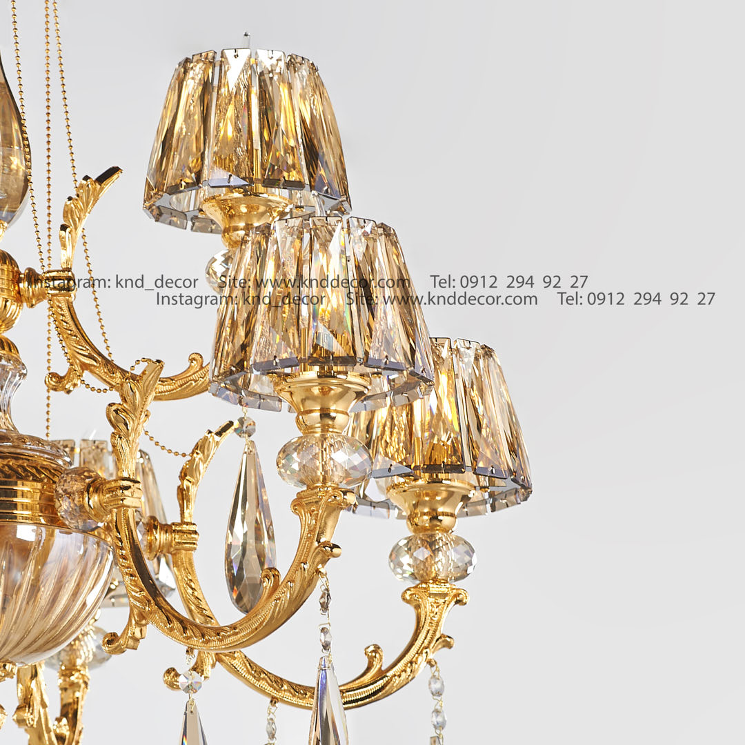 لوستر جار پتینه کریستال با کلاهک کریستال آویز بادامی 9