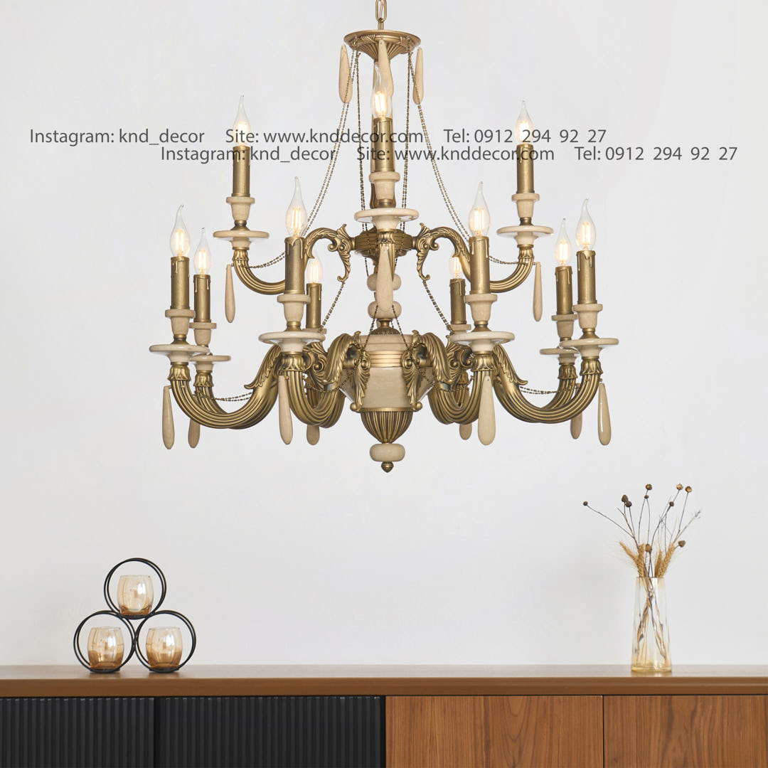 لوستر دایانا آنتیک سنگ کرم آویز سنگ 12