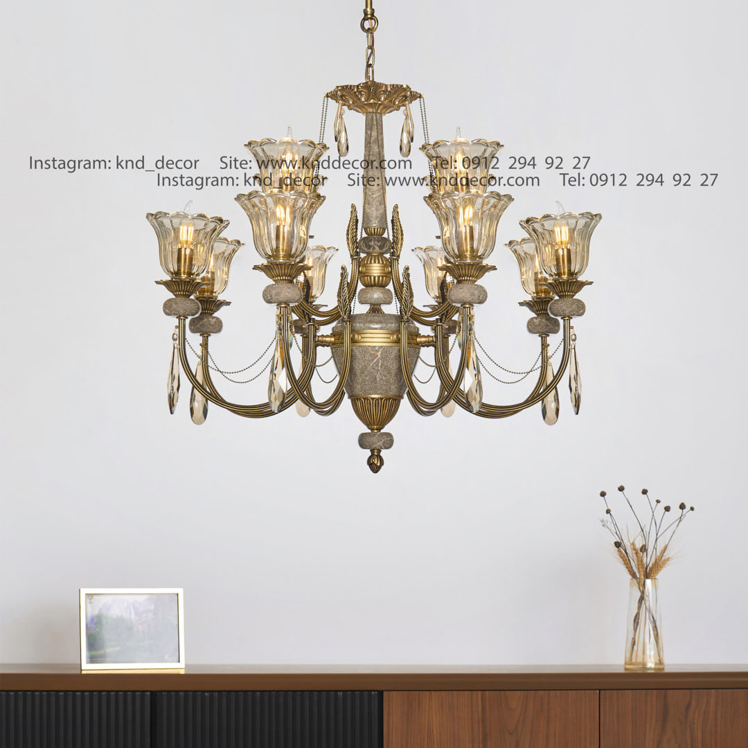 1 دیدگاه برای لوستر لیانا برنجی یراق آلومینیوم با لاله آویز بادامی