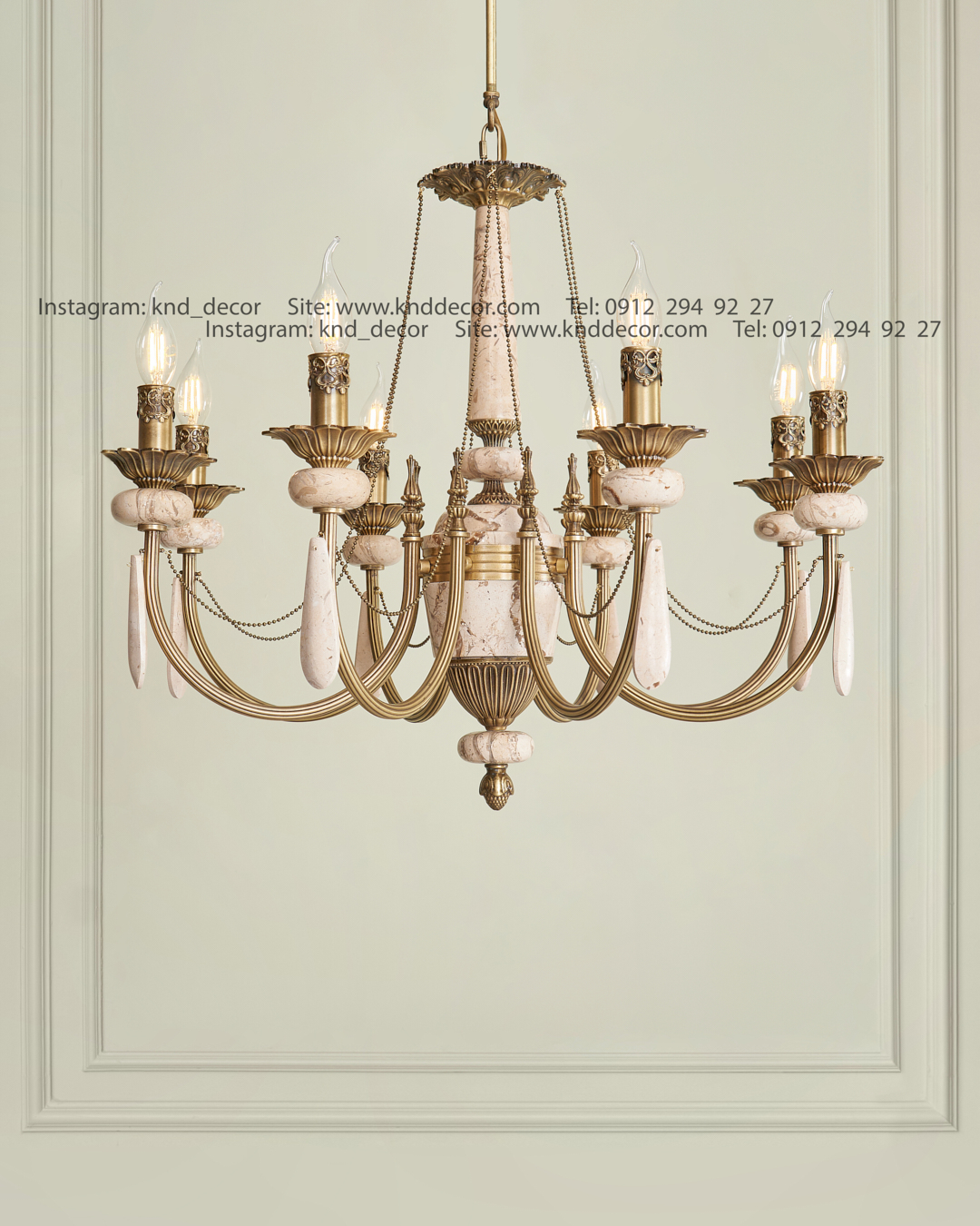 لوستر لیانا آهن آنتیک سنگ کرم پرطاووسی آویز سنگ 8