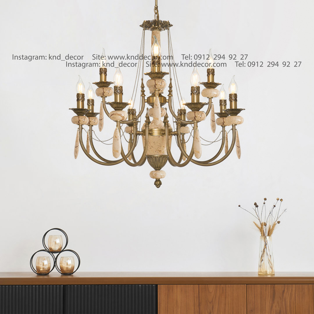 لوستر لیانا آهن آنتیک سنگ کرم پرطاووسی آویز سنگ 12