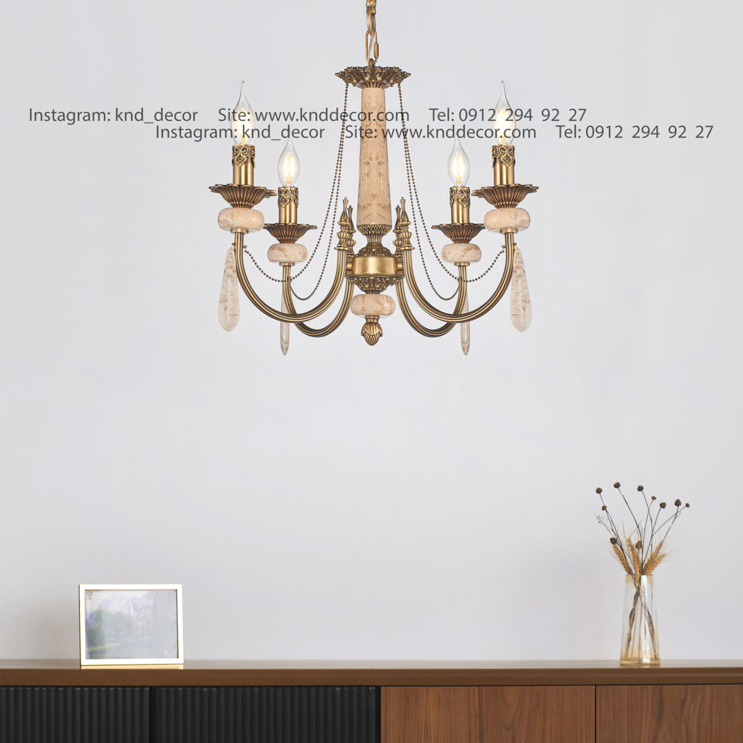 لوستر لیانا آهن آنتیک سنگ کرم پرطاووسی آویز سنگ 4