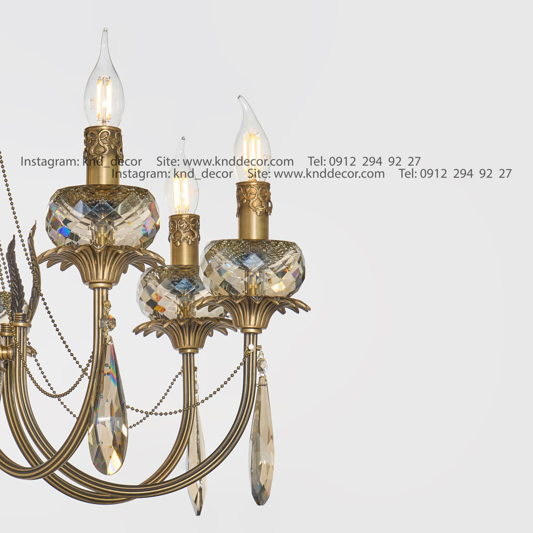 لوستر لیانا آنتیک توپی تراش بزرگ کد A5 آویز بادامی 8