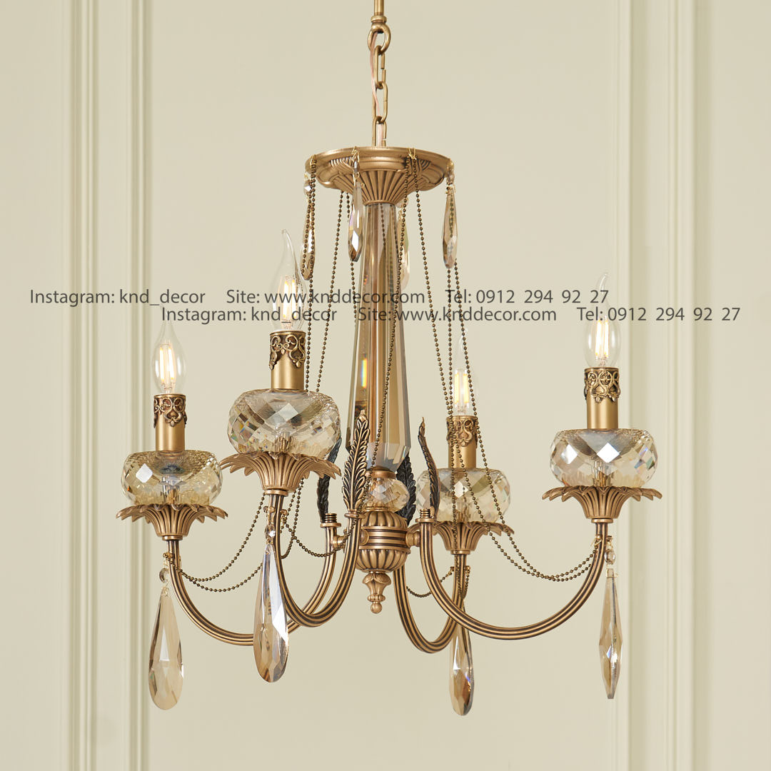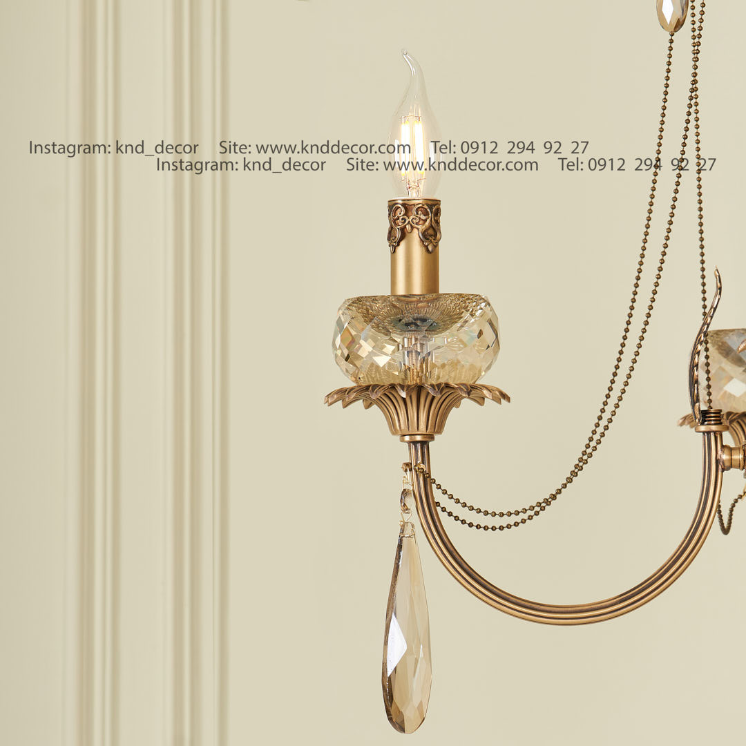 لوستر لیانا آنتیک توپی تراش بزرگ کد A5 آویز بادامی 4