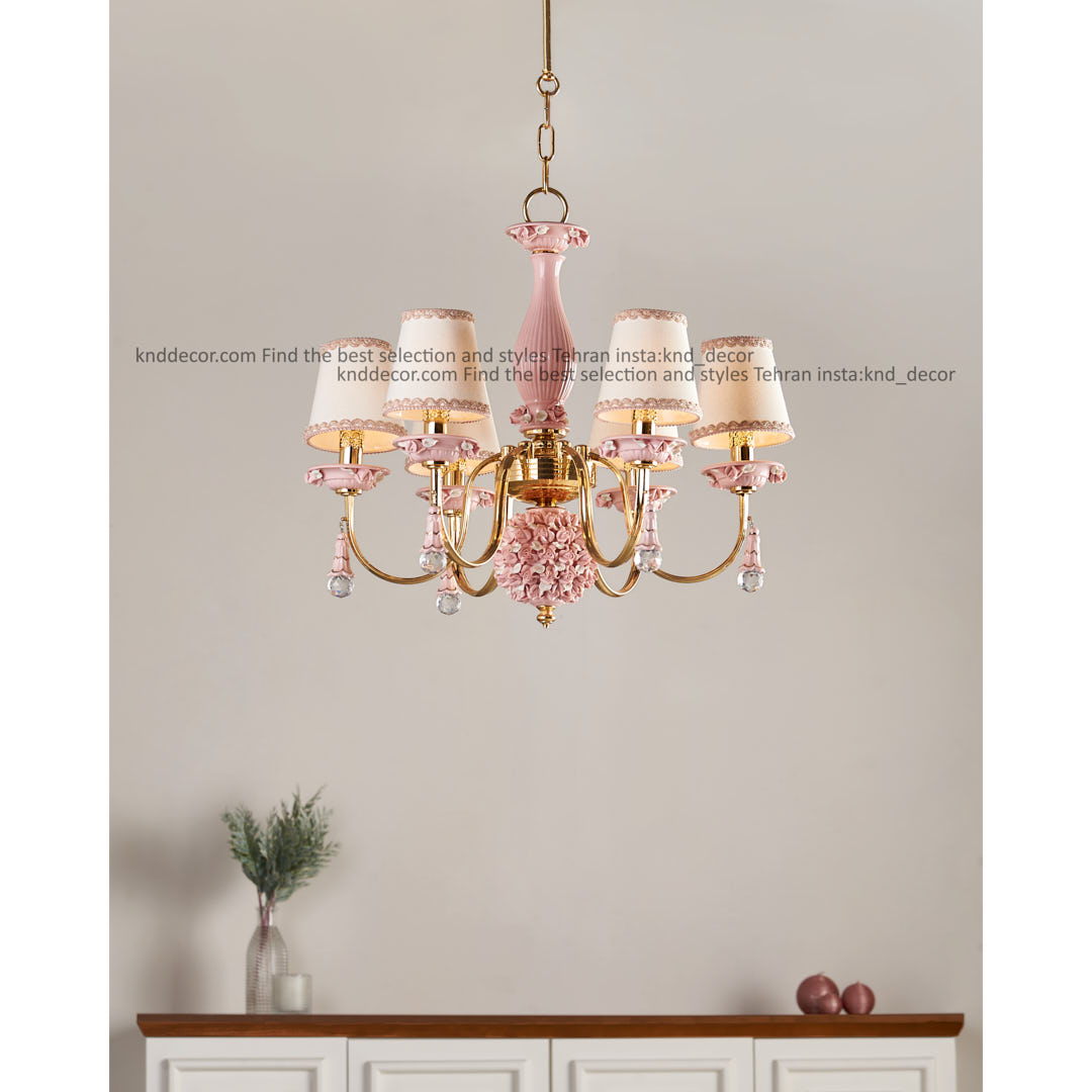 لوستر شکوفه فورتیک سرامیک صورتی با کلاهک پارچه با آویز سرامیک 6