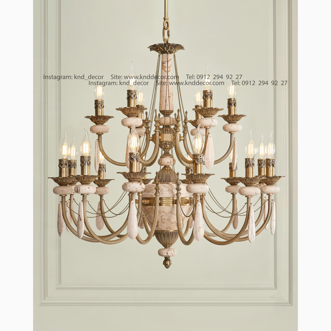 لوستر لیانا آهن آنتیک سنگ کرم پر طاووسی آویز سنگ ۱۸
