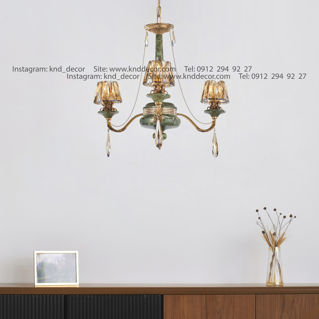 لوستر رویال آنتیک سنگ سبز زنبق آفتاب کلاهک کریستال آویز بادامی 3