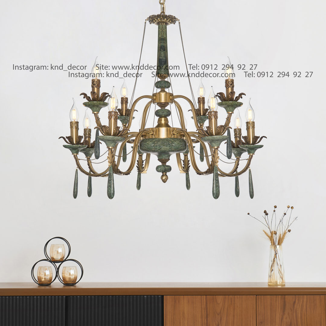 لوستر رویال ملیکا آنتیک سنگ سبز آویز سنگ 12