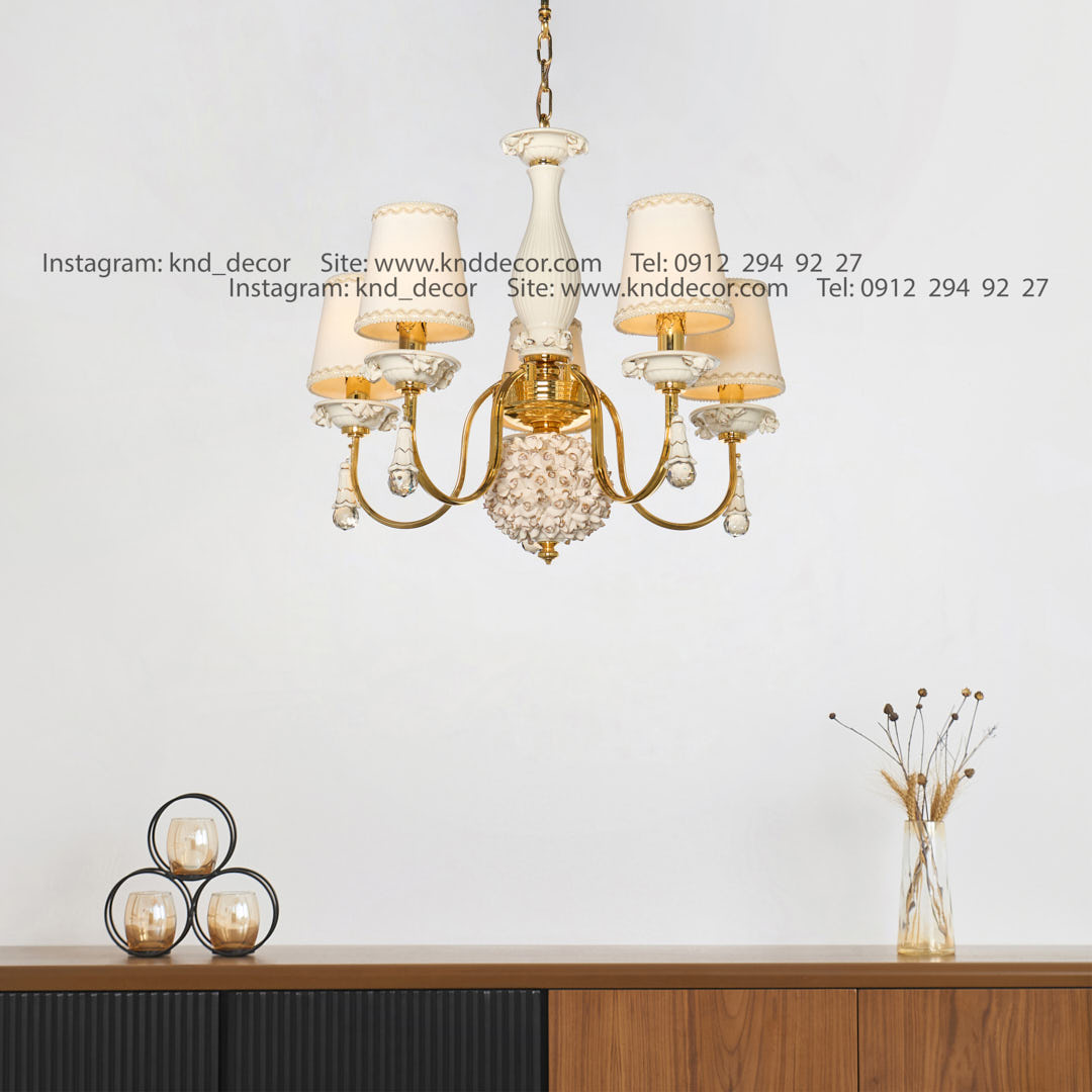 لوستر شکوفه فورتیک سرامیک سفید با کلاهک پارچه با آویز سرامیک 5