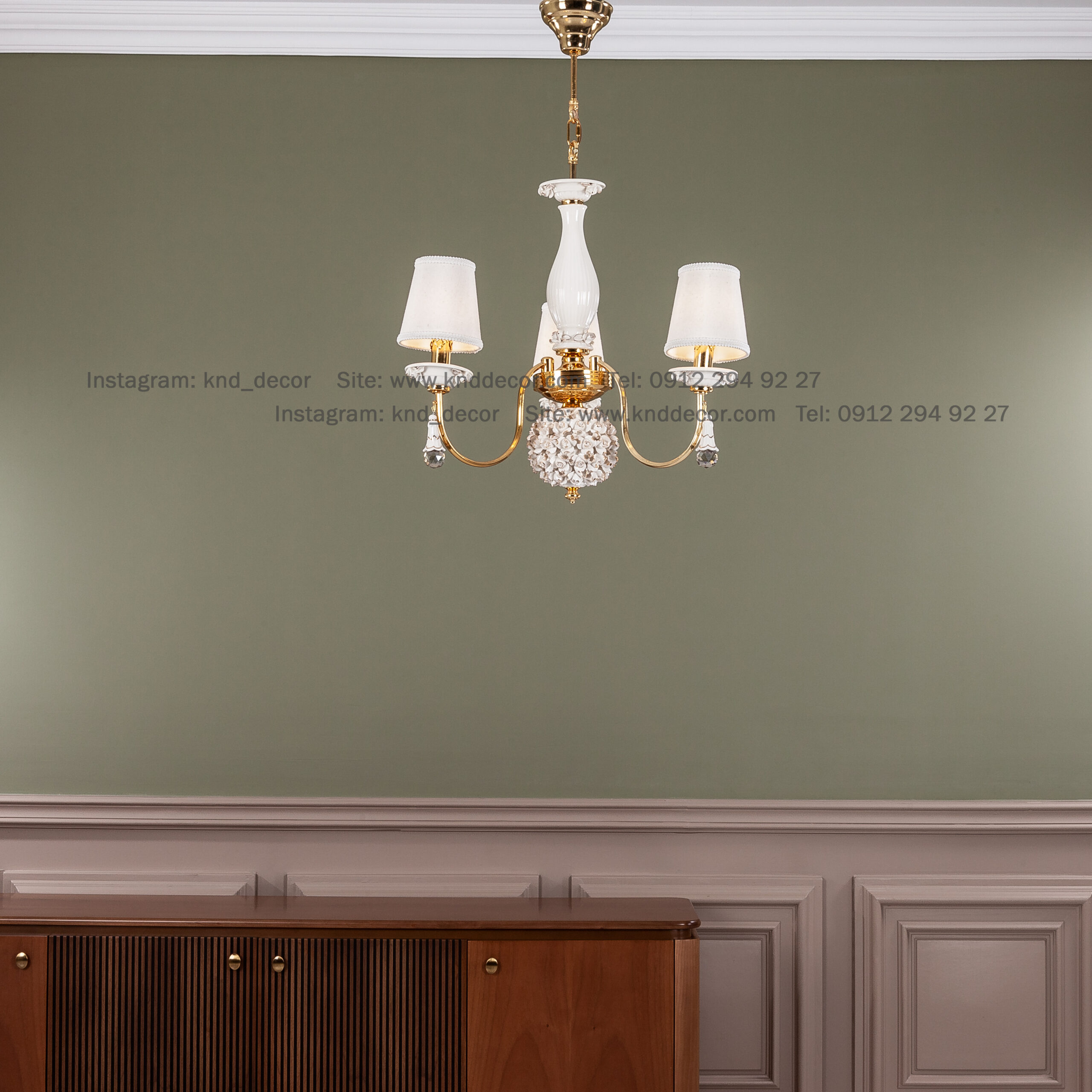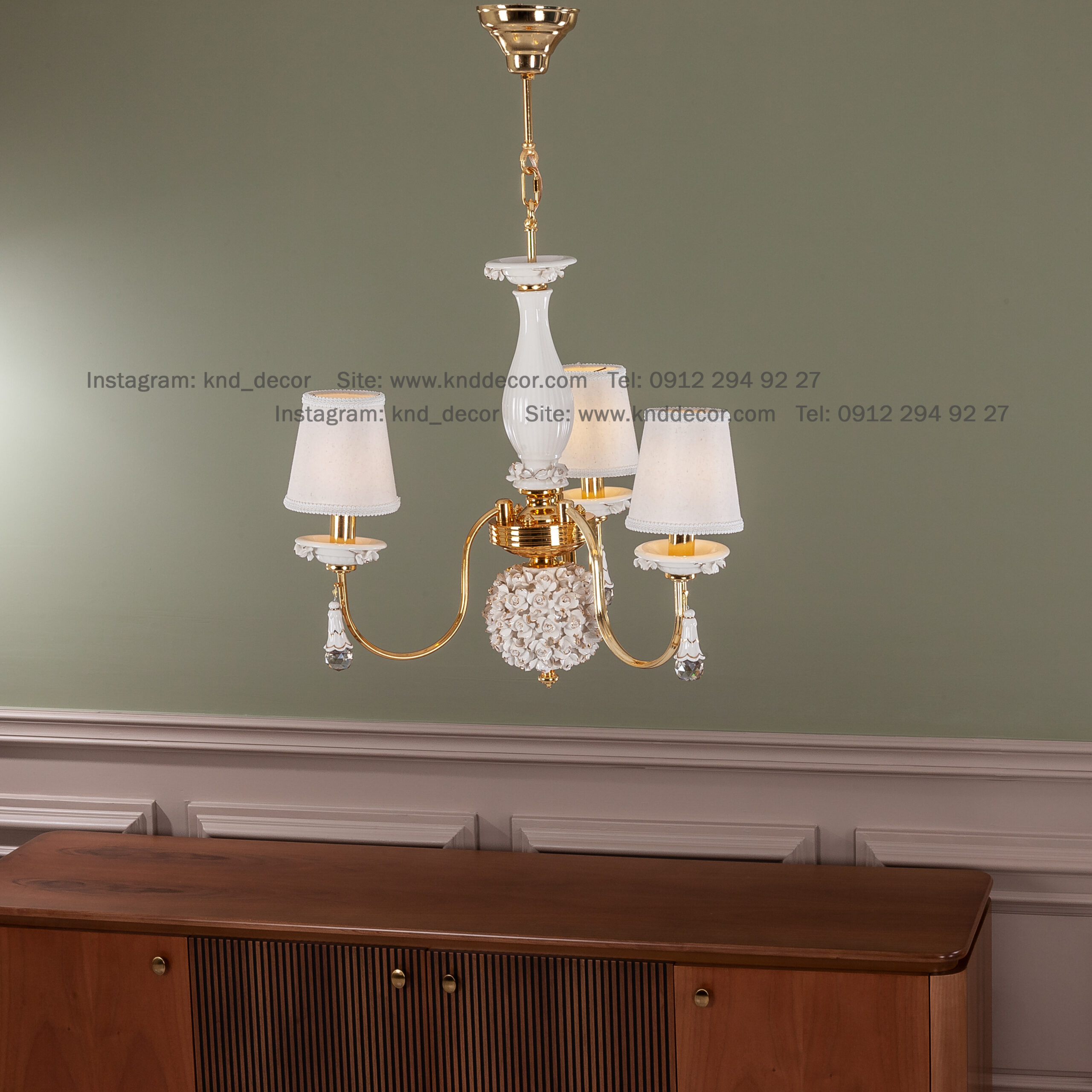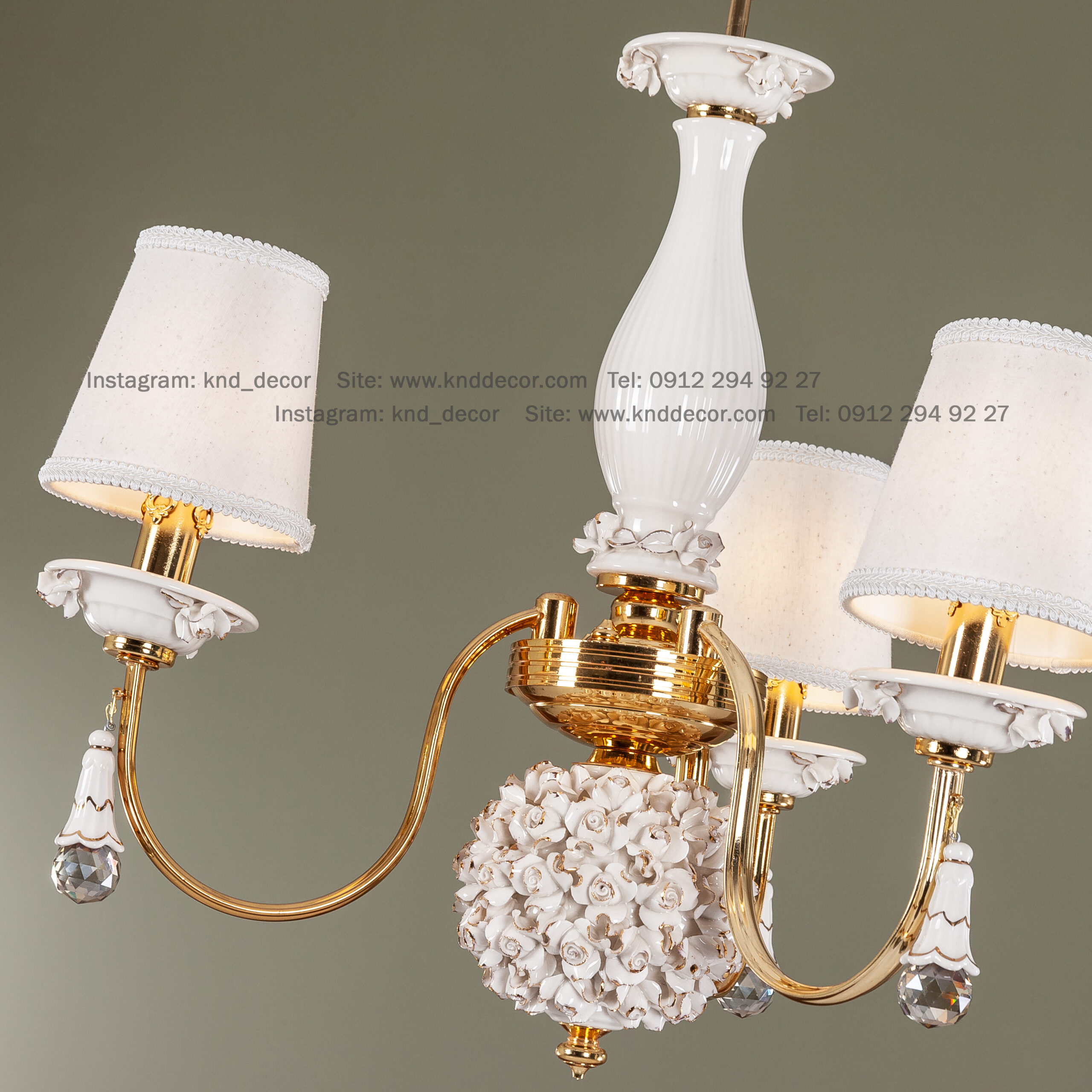 لوستر شکوفه فورتیک سرامیک سفید با کلاهک پارچه با آویز سرامیک 3